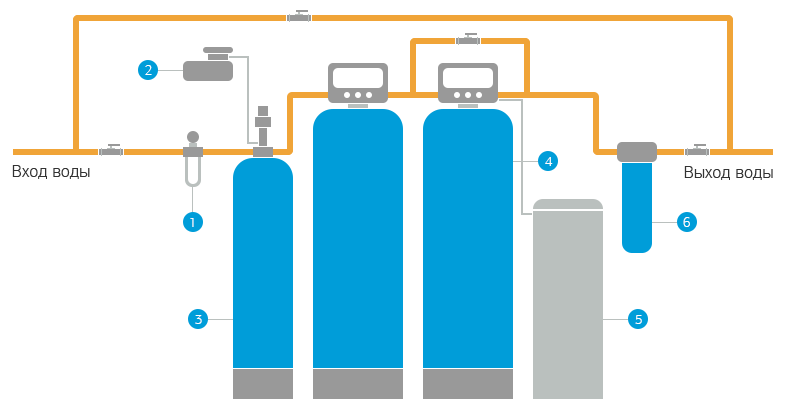 • Умягчение воды. Питьевое водоснабжение предполагает получение воды, избавленной от находящихся в ней солей тяжелых металлов, для чего используют систему умягчения воды. Длительное использование слишком жесткой воды может преждевременно вывести из строя различные бытовые приборы – стиральные, посудомоечные машины, системы отопления.