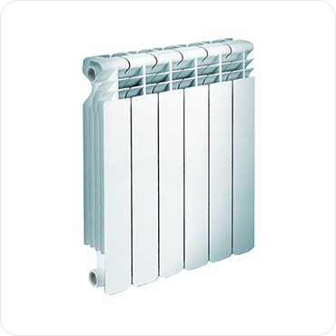 Биметаллические радиаторы. Это одно из лучших и оптимальных решений в конструкции радиаторов, которое включает в себя хорошую теплопроводность алюминия и прочность стальных труб. Теплоноситель в биметаллических радиаторах движется по стальным трубам, а тепло отводится алюминиевыми ребрами. Таким образом, количество воды в секции уменьшено (примерно 150 мл), что делает их более экономичными по сравнению с другими видами радиаторов. Биметаллические радиаторы обладают мощностью порядка 200 Вт. Такой вид радиаторов объединяет в себе преимущества стальных и алюминиевых радиаторов, исключая их недостатки. Стальные трубы исключают возможность контакта алюминия с теплоносителем, вследствие этого отсутствует газообразование, повышается прочность конструкции, рабочее давление значительно повышается (до 30 бар). А алюминий придает им эстетичный дизайн и хорошую теплопроводность.