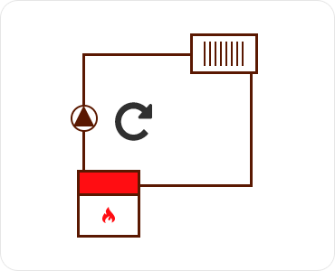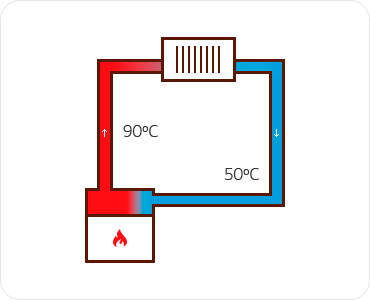 Вода, нагреваясь в котле, поднимается вверх по центральному стояку и по подающему трубопроводу поступает в радиаторы отопления (нагревательные приборы), где отдает часть своего тепла. Далее уже охлажденная вода по обратному трубопроводу вновь поступает в котел и снова нагревается. Затем цикл повторяется, обеспечивая комфортную температуру в отапливаемом помещении.