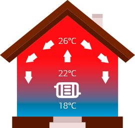 Вид отопления, при котором тепло передается благодаря перемешиванию объемов горячего и холодного воздуха. Под воздействием отопительного прибора холодный воздух нагревается и из-за разницы температур происходит циркуляция воздуха.