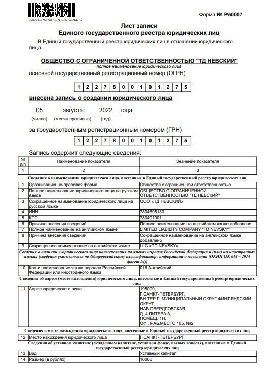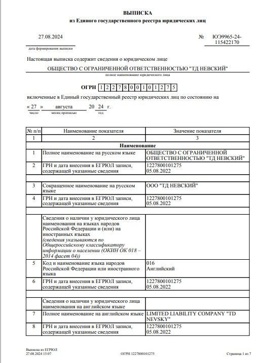 ООО «ТД Невский» реквизиты