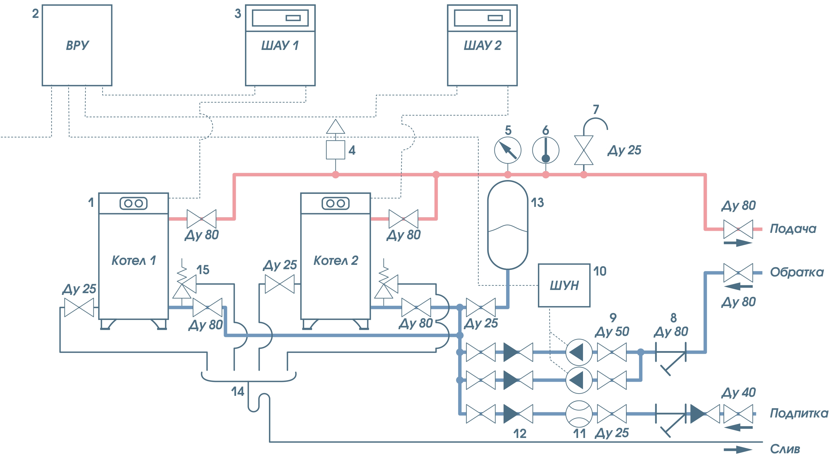 Наше оборудование отличается высокой точностью регулировки, что достигается за счет применения многоступенчатой системы нагрева, а также цифровых регуляторов температуры. Управление промышленным электрическим котлом на 150 кВт вынесено в отдельный корпус — шкаф автоматики и управления (ШАУ). Это повышает надежность конструкции, так как не допускает излишнего перегрева систем регулировки.